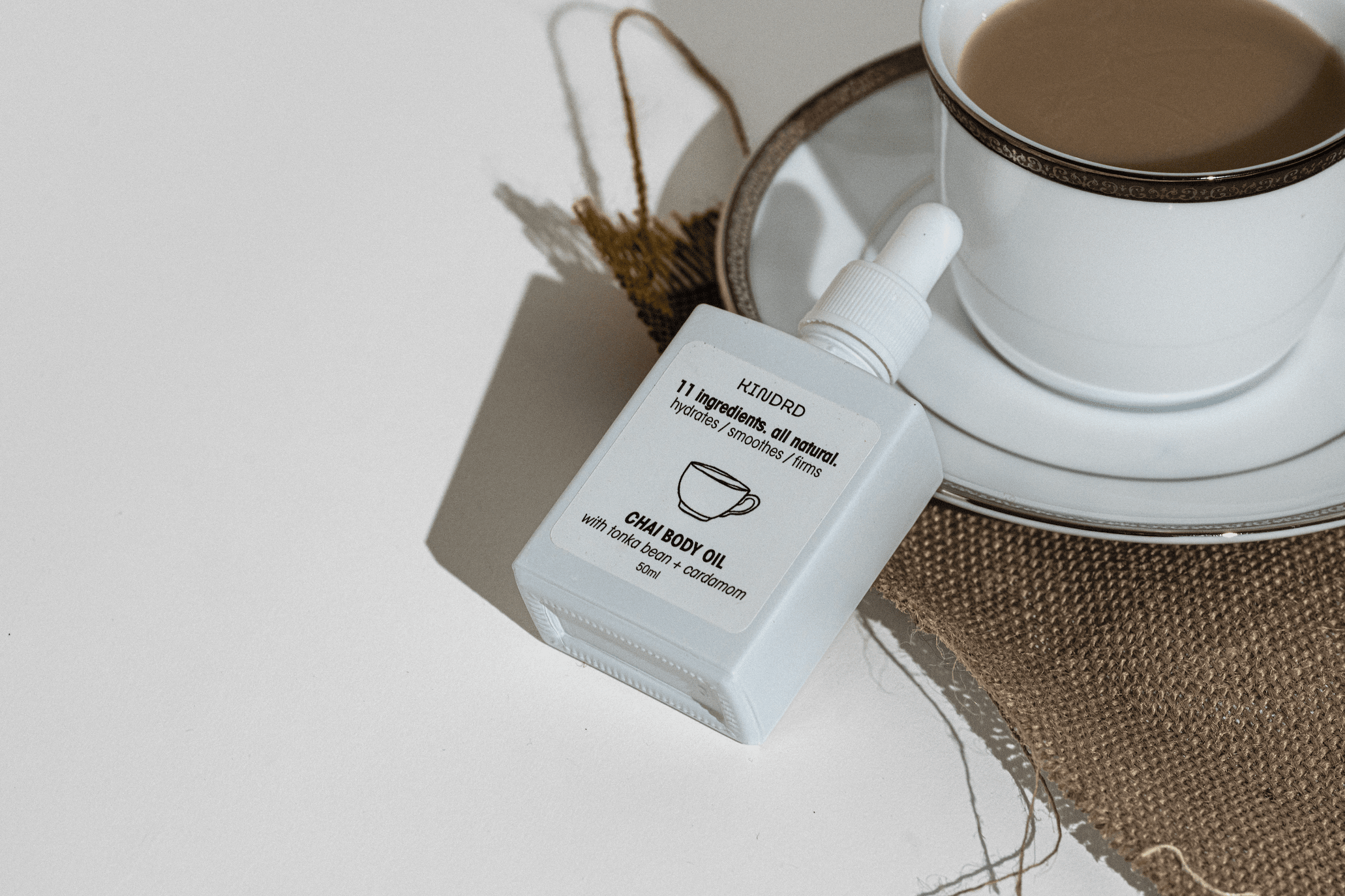 infused with cardamom and tonka bean essential oils, Chai Body Oil brings the perfect cozy and comfort vibes this Fall + Winter